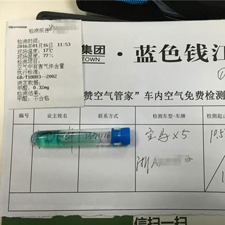 綠城·藍(lán)色錢江專屬車內(nèi)空氣公益檢測(cè)第二期