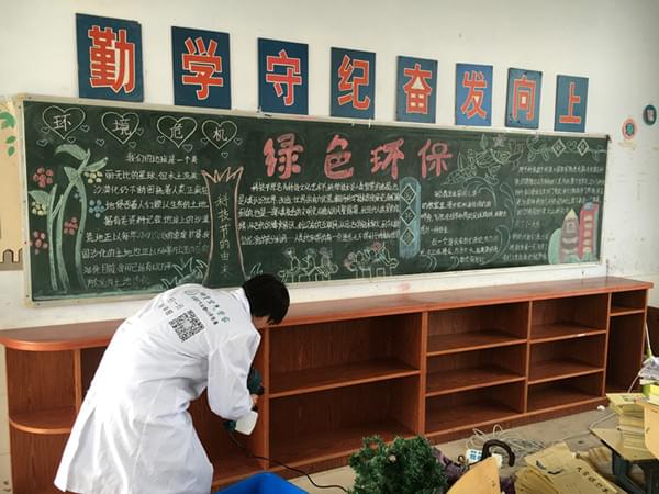 我們發(fā)現(xiàn)教室的黑板報上學(xué)生寫的都是對綠色環(huán)保環(huán)境的強烈愿望!