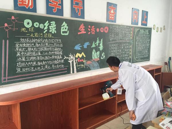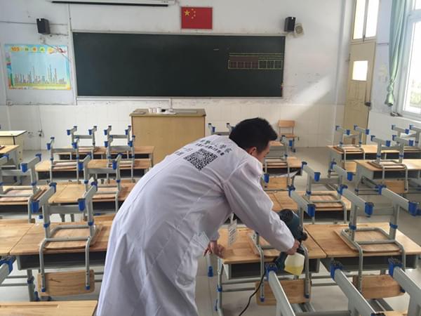 教室桌椅進(jìn)行除醛藥劑噴涂!