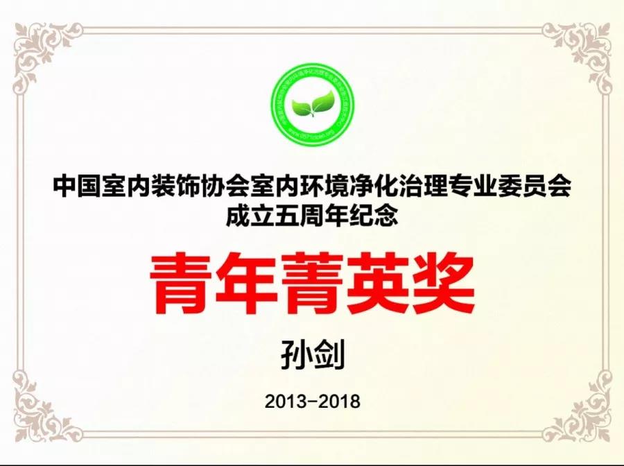2018年12月19日,中國(guó)室內(nèi)環(huán)境凈化治理行業(yè)第五屆技術(shù)創(chuàng)新分享會(huì)在北京新聞大廈長(zhǎng)安發(fā)布廳舉行。創(chuàng)綠家環(huán)保總裁孫劍榮獲凈化委成立5周年杰出貢獻(xiàn)獎(jiǎng)和青年菁英獎(jiǎng)。